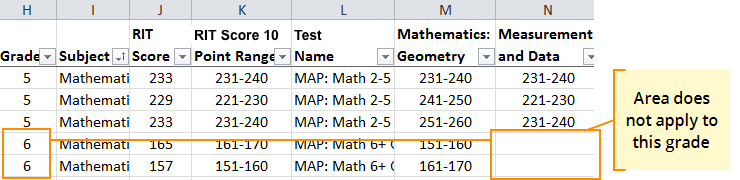 - For a meeting of all 6th grade math teachers, you could sort by the Geometry column to see which students have lower achievement in that area, across all classes.